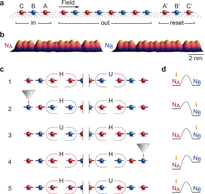 Researchers in the Netherlands developed a device composed of individual Fe atoms that allows for remote detection of spin dynamics. They have characterized the device and used it to detect the presence of spin waves originating from an excitation induced by the scanning tunneling microscope tip several nanometres away; this may be extended to much longer distances. The device contains a memory element that can be consulted seconds after detection, similar in functionality to e.g. a single photon detector. They performed statistical analysis of the responsiveness to remote spin excitations and corroborated the results using basic calculations of the free evolution of coupled quantum spins…read more. Open Access TECHNICAL ARTICLE