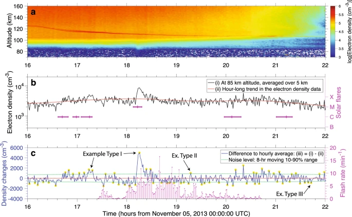Ionospheric electron density recorded on November 05, 2013. Credit: Scientific Reports volume 11, Article number: 10250 (2021)Â