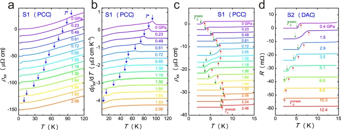 Credit: Nature Communications volume 12, Article number: 3645 (2021) Temperature dependence of resistivity in CsV3Sb5 single crystals under high pressure.