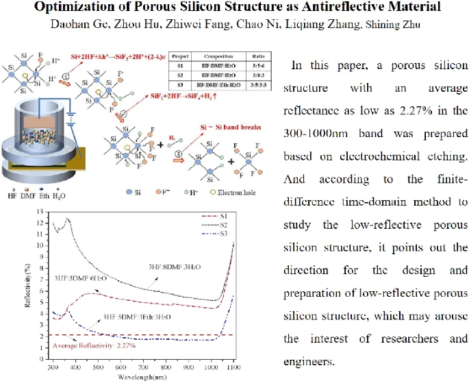 Researchers in China examined changes in the porous structure of silicon to make it less reflective and thus a better material for solar absorbing technology. Currently, the reflectivity of porous silicon prepared using electrochemical methods is around 5 to 10 per cent, with the lowest reflectivity being 4.7 per cent for light in the wavelength range of 300 to 1000 nanometres. They calculated and compared the surface reflectivity of porous silicon structures with different pore sizes. They discovered that the porous silicon structure when prepared under the optimal corrosion parameters can achieve an average reflectivity as low as 2.3 per cent for light in the incident wavelength range of 300 to1000 nm. They found that pore sizes of 300 to 700 nm could achieve lower reflectivity…read more. TECHNICAL ARTICLEÂ