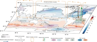 Schematic of the global climatic response to AMOC shutdown. Credit: Nature Climate Change (2022)