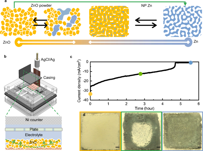 Electrochemical investigation on the transition between Zn and ZnO. Credit: Nature Communications volume 13, Article number: 2870 (2022)Â