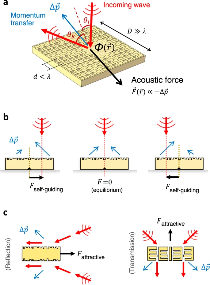 Shaping contactless forces with metasurfaces that steer acoustic waves. Credit: Nature Communications volume 13, Article number: 6533 (2022)Â