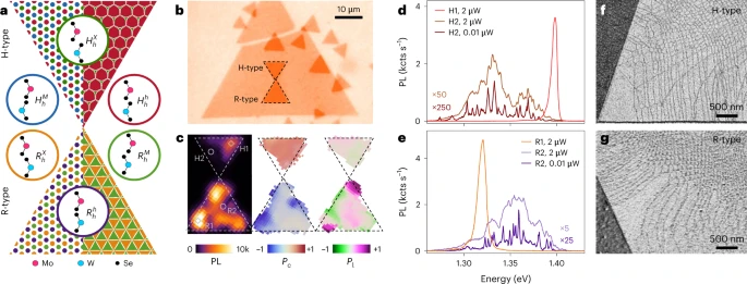 Characteristics of MoSe2–WSe2 HBLs in H- and R-type stacking. Credit: Nature Nanotechnology (2023)