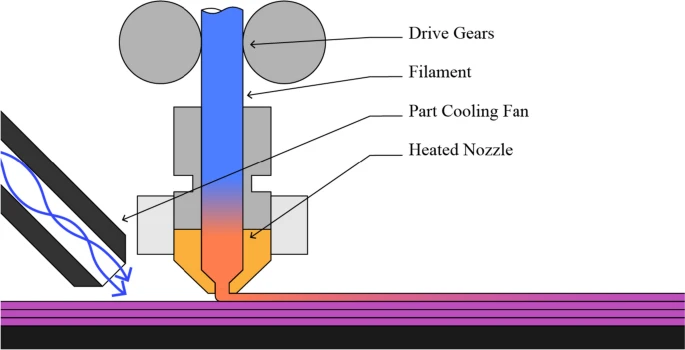 … diagrammatic example of a typical FFF extruder, where a cylindrical filament is pushed…Credit: Integrating Materials and Manufacturing Innovation, 3 April 2024