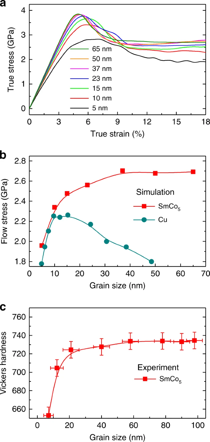Mechanical behavior of SmCo5 as a function of grain size. Full size image https://www.nature.com/articles/s41467-019-11505-1/figures/1 Credit: Nature Communications, https://www.nature.com/articles/s41467-019-115