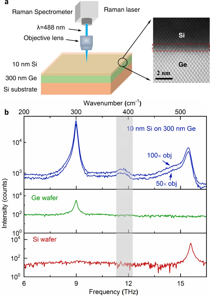 Raman detection of interfacial modes at the Si-Ge interface. Credit: Nature Communications volume 12, Article number: 6901 (2021
