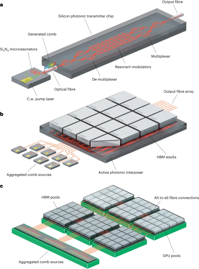Artistic vision of a disaggregated data centre based on Kerr frequency comb-driven silicon photonic links. Credit: Nature Photonics, 29 June 1923